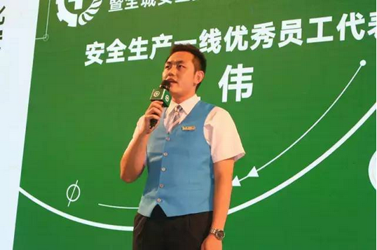 现在,由2016年深圳市五一劳动 奖状获得单位,深圳市龙岗区坂田街道安全生产监督管理办公室的代表李信德把安全生产接力棒传递到了现场,安全生产月的吉祥物“安安”接过了接力棒!这个 “安安”是不是很眼熟?这名头戴安全帽、身着黄色防护服,脸上挂着自信笑容的安安就是我们的安全“代言人”啦!